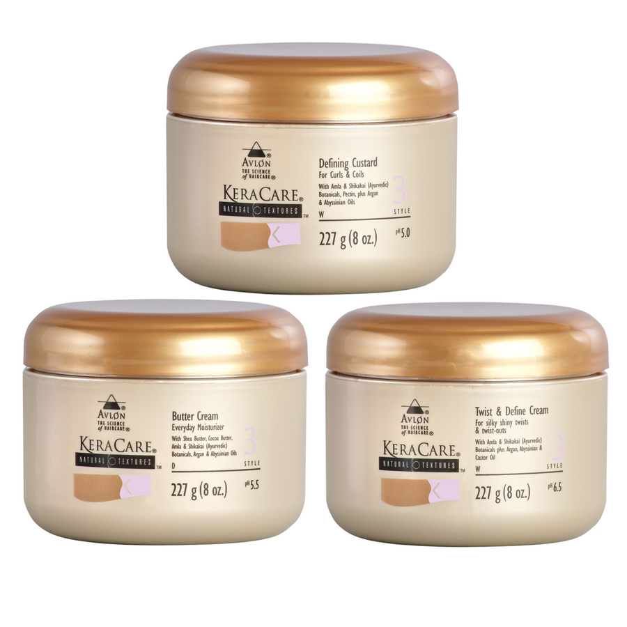 Elevate your curl game with the KeraCare Natural Textures Style & Define Bundle—a must-have for anyone seeking to perfect their natural hairstyles. Order yours today and experience the KeraCare difference!