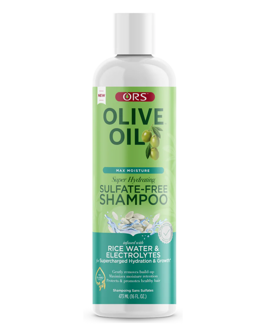 ORS Olive Oil Max Moisture Sulfate-Free Shampoo delivers super hydrating results for natural and relaxed hair. Gently but thoroughly cleanses and removes build-up while providing superior hair hydration restores moisture and nourishment to strands and promotes healthy hair with Rice Water, Electrolytes, Olive Oil and proprietary Oligro™ Complex.