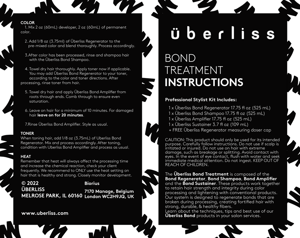 This Bond Treatment System by Uberliss can be used with glazes, glosses, powder lighteners, permanent and demi-permanent colours, or developers to regenerate broken hair bonds caused by these services.